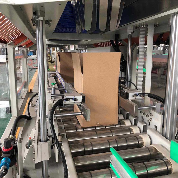 跌落式裝箱機是采用落箱緩沖裝置實現柔性落箱,全自動跌落式裝箱機是將整列的瓶子有效移載到紙箱的上方,根據裝箱要求,自動整列通過定位裝置保證被包裝產品落入紙箱。主要用于袋裝箱或大容器產品的裝箱。跌落式裝箱機概述: 跌落式全自動裝箱機是融合意大利等國同類產品的優點,結合本國具體國情,經技術改進而生產出的專利產品,是目前國內zui先進的裝箱設備。 本設備技術先進,性能可靠,工藝流程科學,食品衛生條件好,生產自動化程度高,操作簡便,是各公司、廠家理想的裝箱設備,尤受飲水行業的歡迎。 主要技術特點: 1、直接落瓶、提箱接瓶,結構簡單緊湊; 2、進瓶、進箱分開傳動,變頻器無級調速; 3、適應多種瓶型,調整方便; 4、多處安全保護,全自動運行; 5、落瓶阻滯及緩沖,減少沖擊及噪聲。 本機主要零件采用優質不銹鋼材料,電氣、氣動系統采用進口元件,如: 日本三菱的PLC變頻器,OMRON傳感器,法國的FE接觸器,意大利的MOTOVARIO減速電機,固此設備故障率低,可靠性高。 1.2主要技術參數 生產能力: 1000箱/小時,8~24瓶/箱; 適應瓶類: 300~600ml ,PET瓶 ; 電源電壓: AC 380V / 50Hz; 電機總功率: 2 Kw; 壓縮空氣: 0.1M3 /min ,6~8bar; 總重量: 1,500 Kg